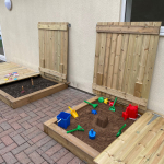 At Baker Street Nursery and Preschool, we benefit from 2 outdoor spaces which means that the children have different areas to explore throughout their day with us. The front garden is used primarily for our gross motor skills activities, offering the children the opportunity to skilfully move around our track on bikes, trikes and scooters. Our preschool are able to use this space directly from their room, utilising ‘free flow’ play where children can move seamlessly between in the indoor and outdoor spaces. Clear communication between rooms mean that the other rooms can also benefit from this space when preschool are not accessing it. Our side garden offers more of an outdoor classroom experience for the children. Having been recently renovated, the side garden benefits from permanent water trays, a sand pit, a mud kitchen and chalk boards. This space is expertly set up by staff before the children access it, with staff taking advantage of a range of outdoor resources. This garden also has easily accessible storage that the children can select the resources that they would like to play with during their garden time. Outdoor play is so important for little ones and so staff endeavour to take children outside in all winds and weathers!